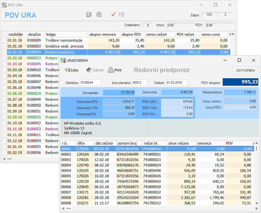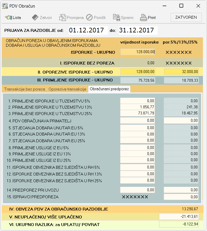 Podaci iz knjige URA i IRA se zaključivanjem na kraju razdoblja automatski unose u obračun kojeg je onda moguće ispisati.