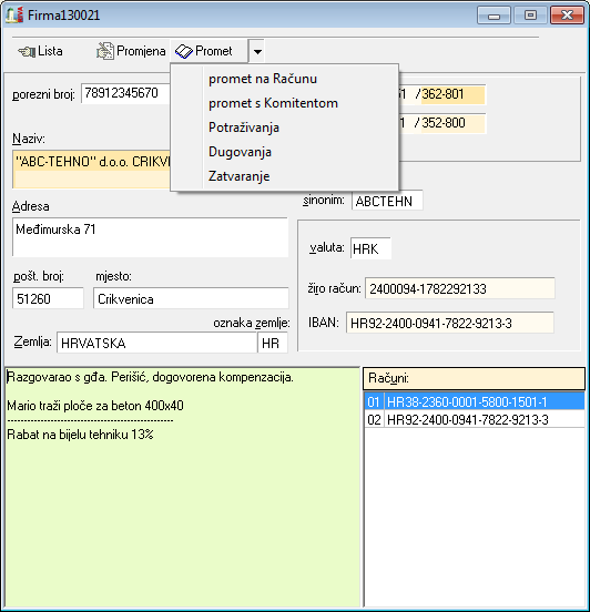 Ovo je zapravo centralno mjesto sustava, jer su i vaši kupci i dobavljači u centru vašeg poslovanja.